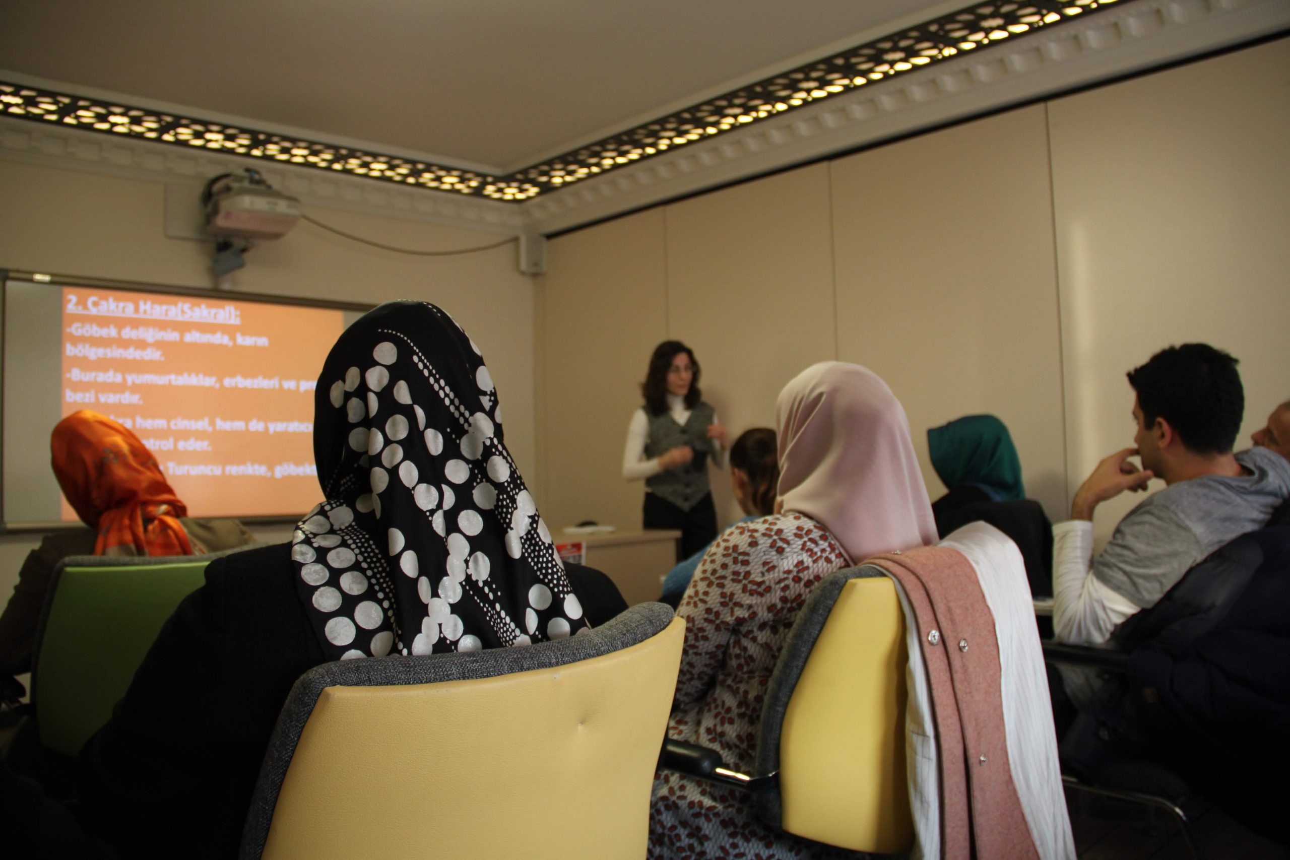 Aurasını görmek istediğiniz kişiyi loş bir odaya alın.Düz ve desensiz olan bir duvara sırtını yaslayacak şekilde durmasını söyleyin.Aynı zamanda yavaş yavaş, derin nefes alıp vermesini isteyin.Bu arada siz de 1-2 metre kadar uzağında durun.Alın-omuz-boyun hizasına sabit olarak bakın.Bakışlarınızı 1-2 dakika sonra boşluğa doğru açın. Sıcak bir yere baktığınızdaki gibi titreşimli bir buğu algılayacaksınız.Daha sonra da bu egzersizleri devamlı yaparsanız,renkleri daha net görebilirsiniz.